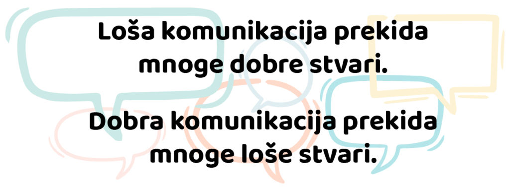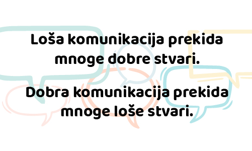 Komunikacija se najmanje odnosi na „pričanje“. Koje reči biramo i kako se ponašamo – takvi su nam i odnosi – u kući, u društvu, na poslu. Koliko smo slušali sagovornika, način na koji smo nešto rekli, ton, izraz lica… Sve utiče na kvalitet naših razgovora.